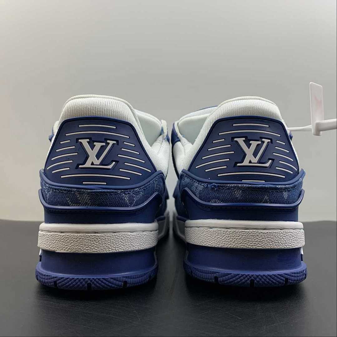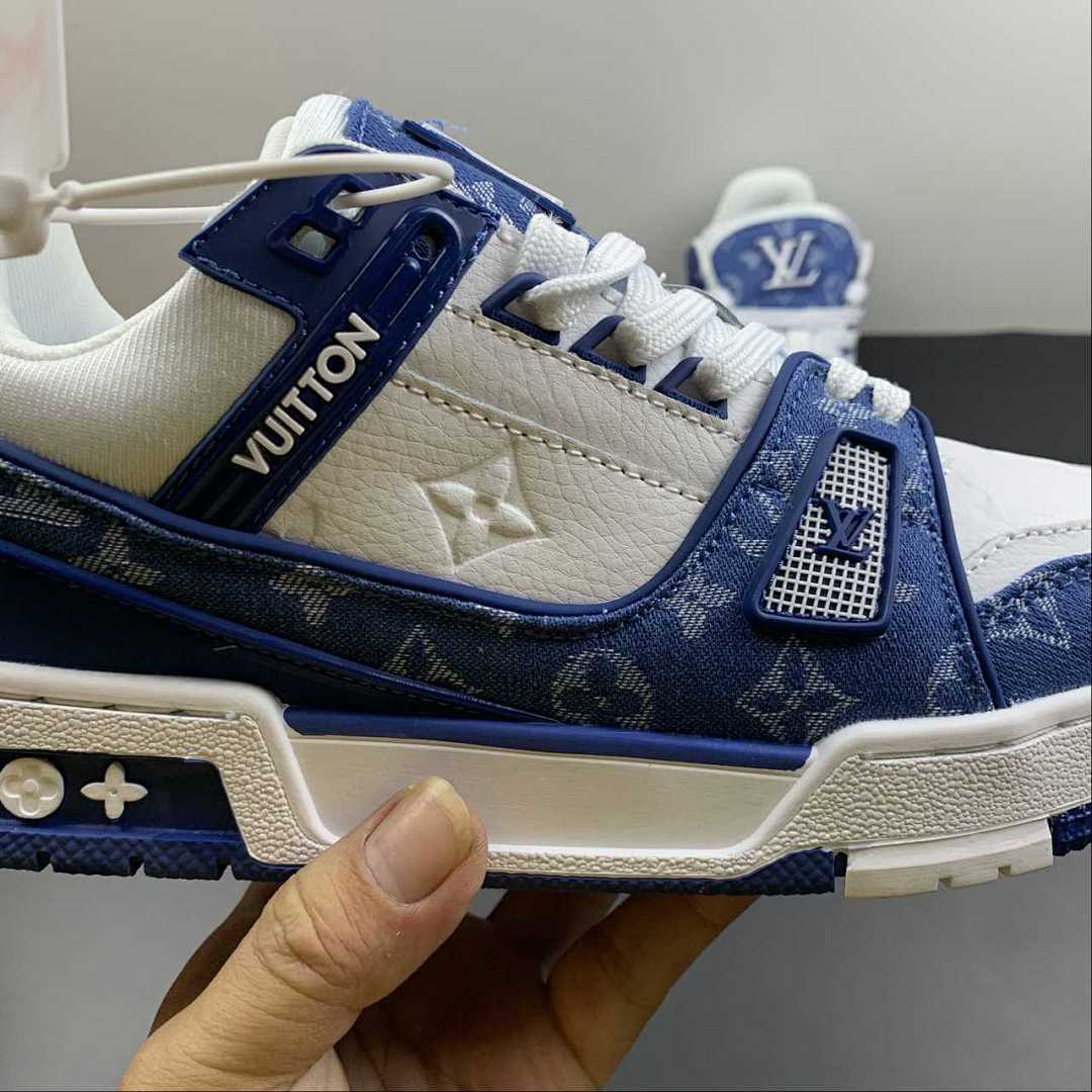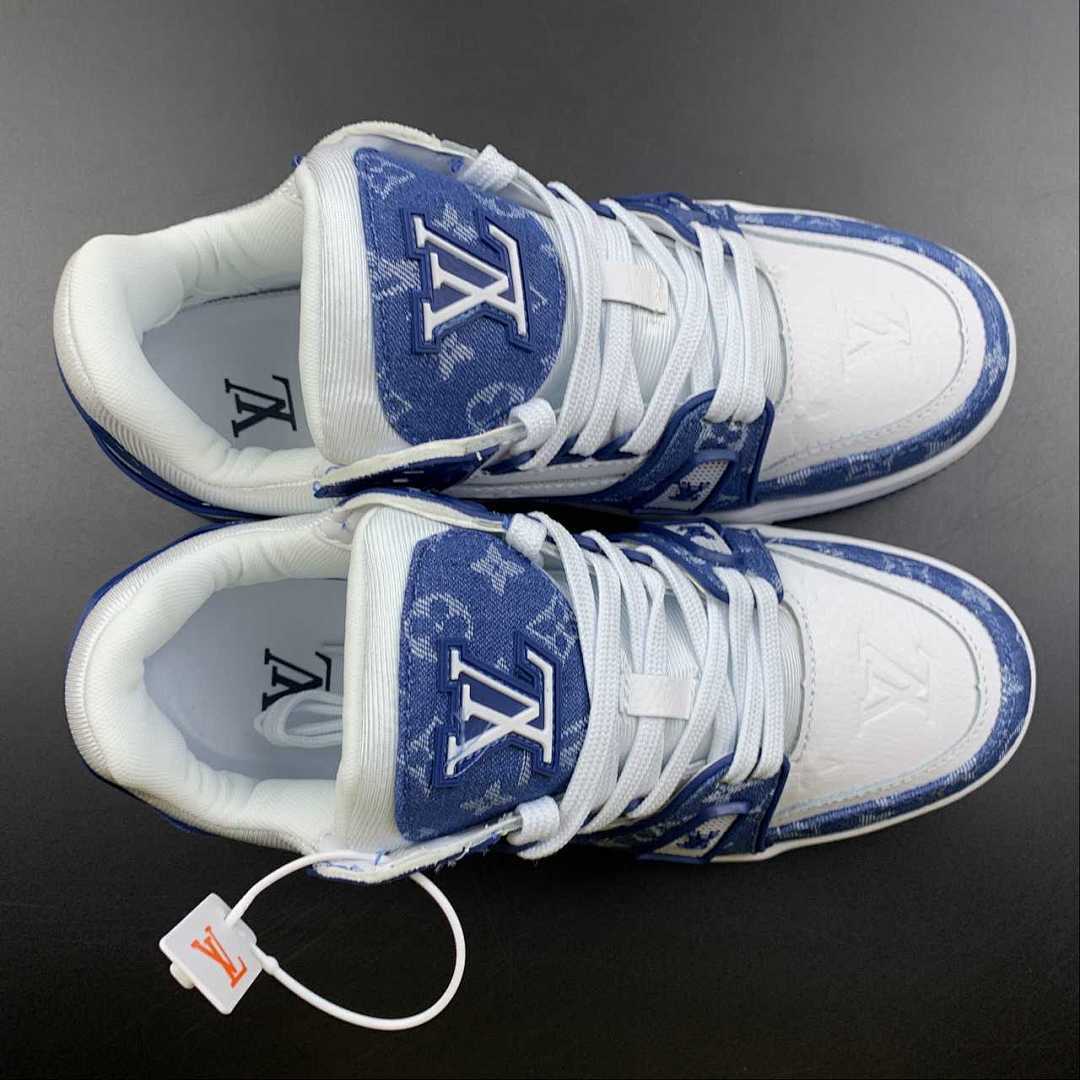 N370O LV TRAINER MONOGRAM DENIM WHITE BLUE